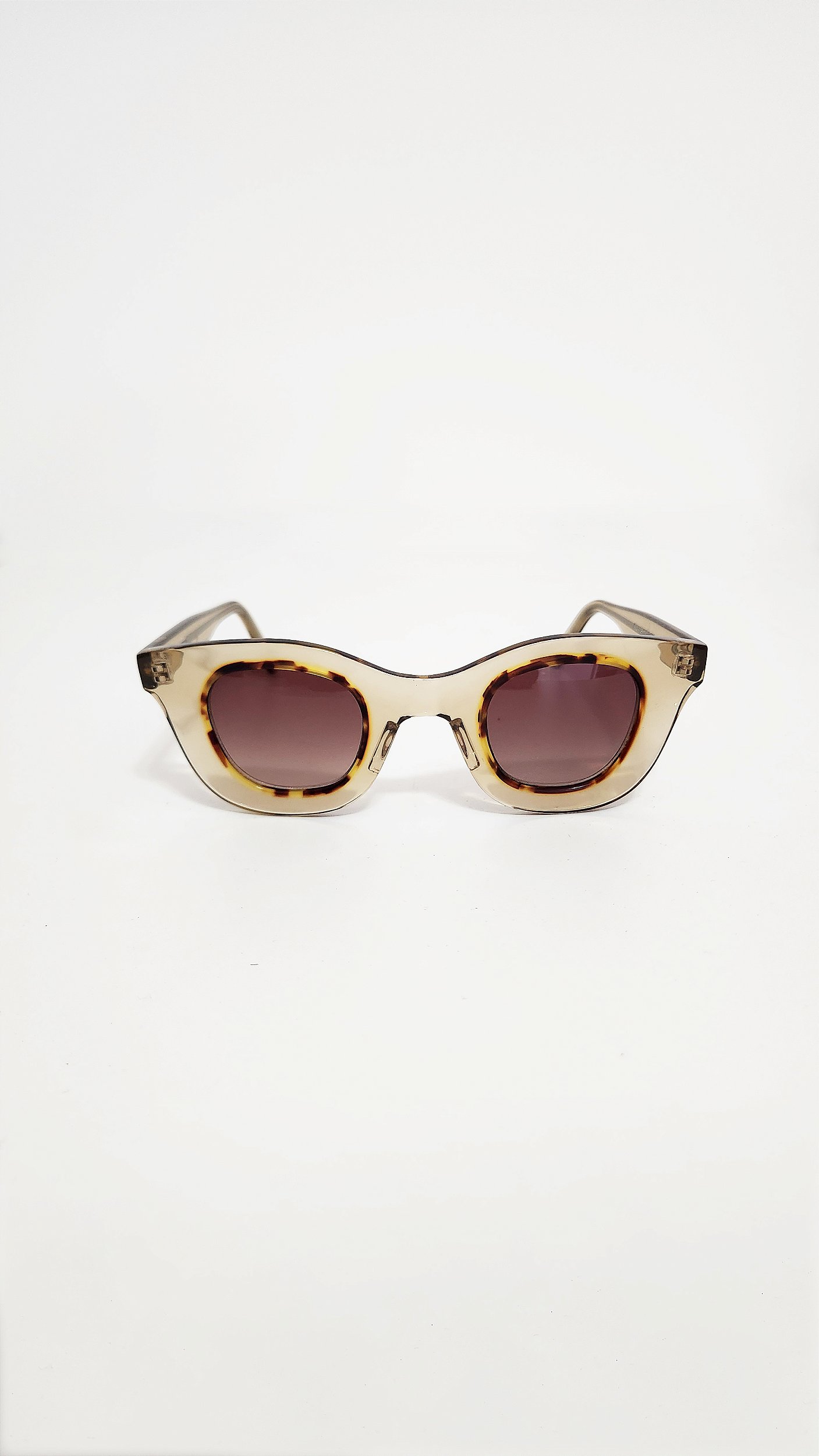 "O óculos de sol no formato Cat Eye suavizado é a expressão da elegância que não precisa gritar para ser notada. O modelo Calma carrega no nome esse estado de sentimento tão necessário diante de um mundo que nos pressiona cada vez mais a atropelar tudo o que vem pela frente e viver no automático. Ver com Calma é pisar no freio e assumir o controle."